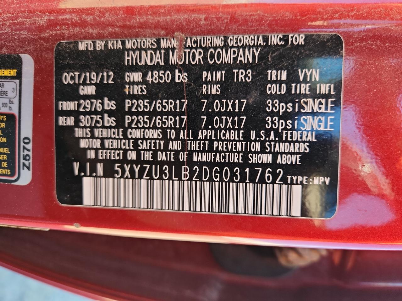 Колір ЧервонийЦиліндри 4VIN 5XYZU3LB2DG031762Стан Заводиться та їде (перевірено)Ушкодження Передня або задняДата аукціону 2025-11-25