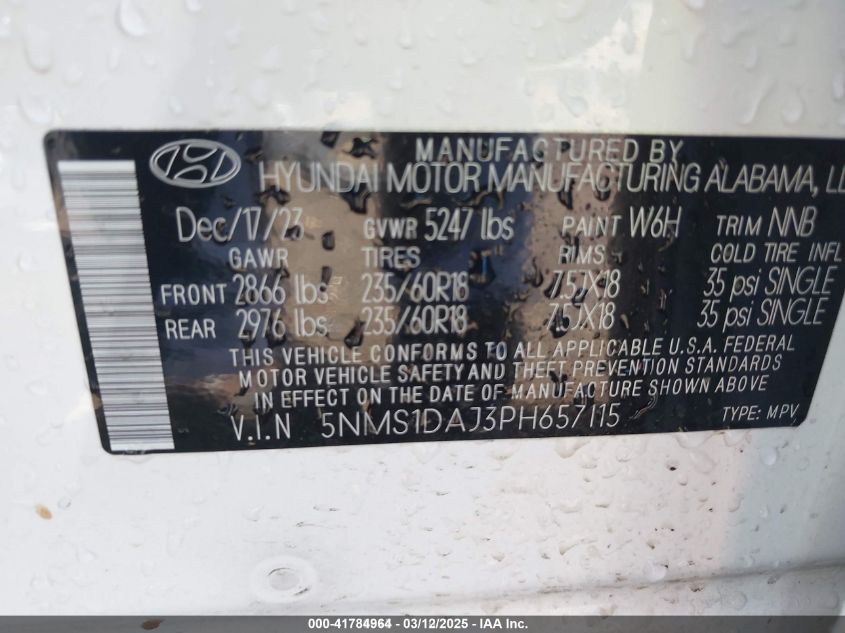 HYUNDAI SANTA FE 2.5 2023 р.в., Повний привід (5NMS1DAJ3PH657115) з США