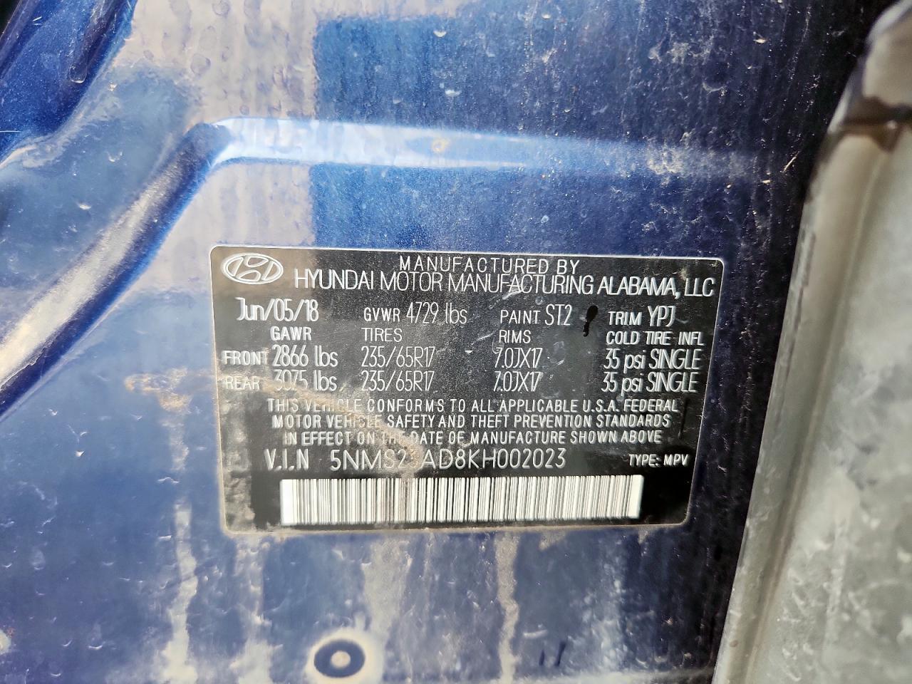 Колір СинійЦиліндри 4VIN 5NMS23AD8KH002023Стан Заводиться та їде (перевірено)Ушкодження НезначніДата аукціону 2025-11-03