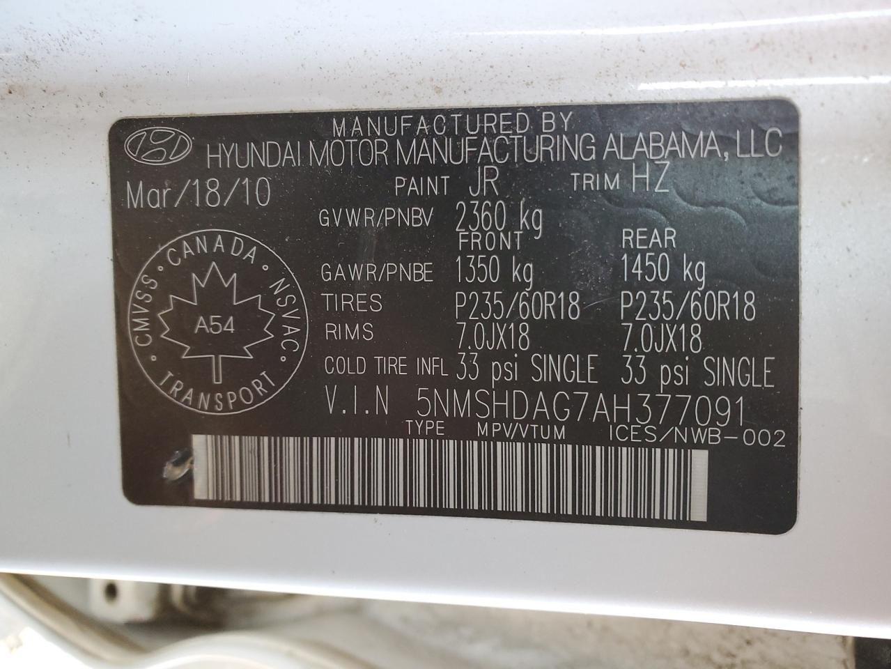 2010 HYUNDAI SANTA FE LIMITED V6