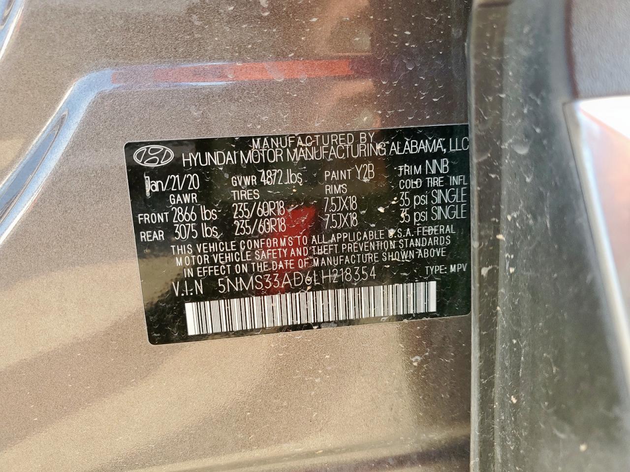 HYUNDAI SANTA FE 2.4 2020 р.в., (5NMS33AD6LH218354) з США