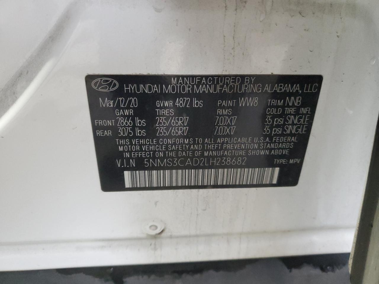 Колір БілийЦиліндри 4Привід Повний привідVIN 5NMS3CAD2LH238682Стан Заводиться та їде (перевірено)Ушкодження Передня або задня