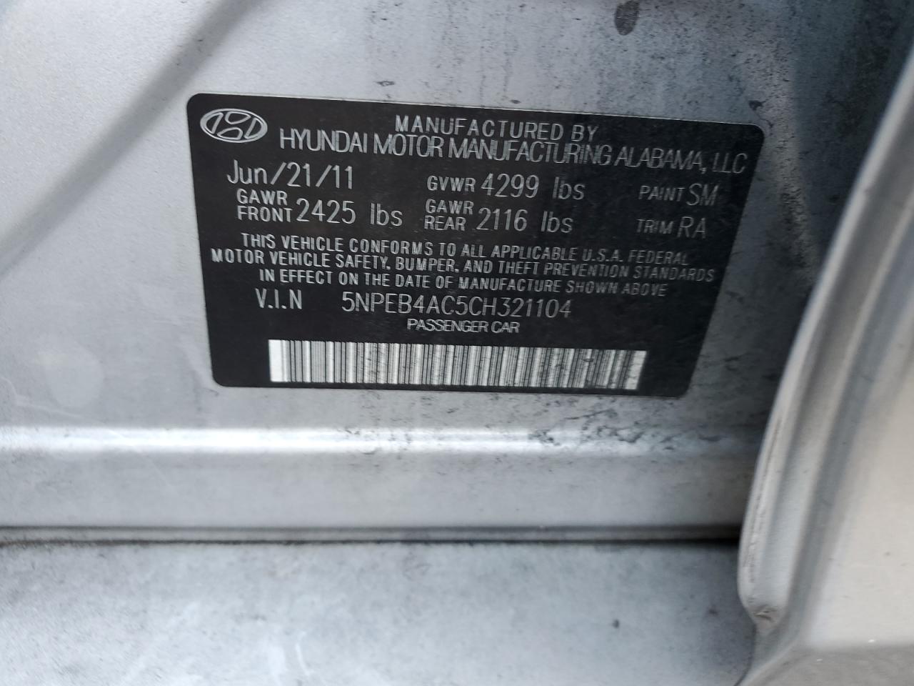 HYUNDAI SONATA 2.4 2012 р.в., (5NPEB4AC5CH321104) з США