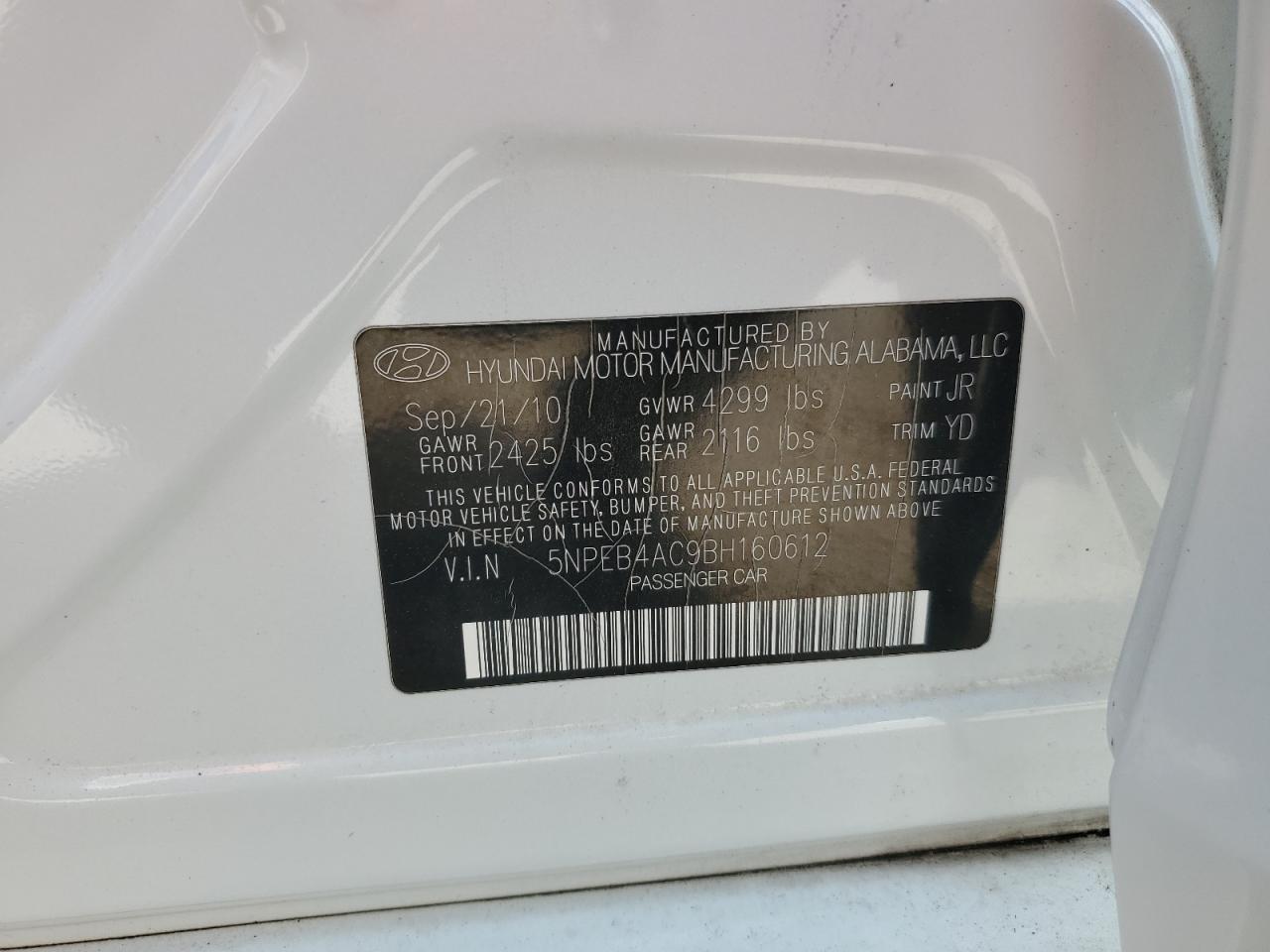 Колір БілийЦиліндри 4VIN 5NPEB4AC9BH160612Стан Заводиться та їде (перевірено)Ушкодження НезначніДата аукціону 2025-11-05