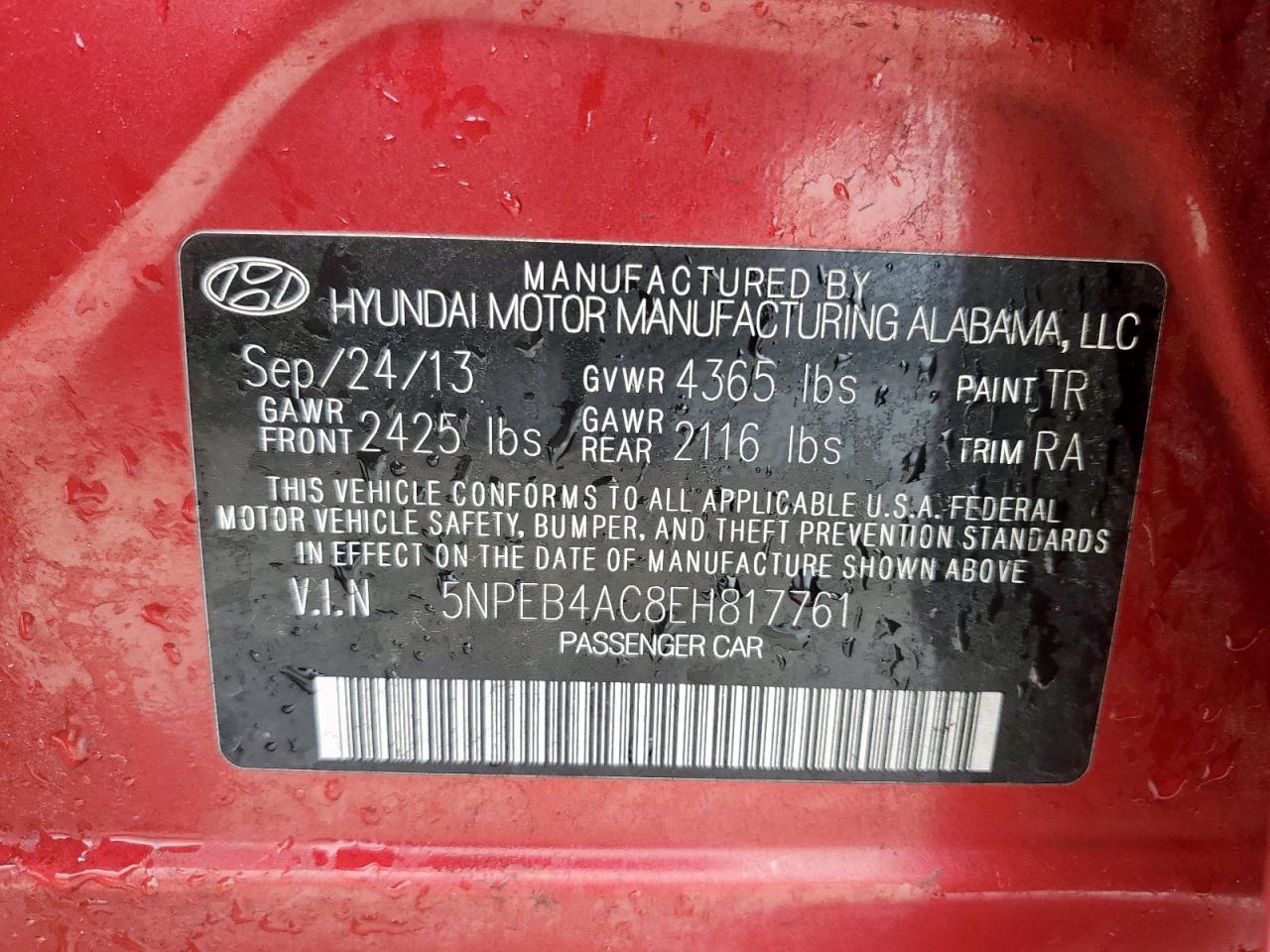 Колір ЧервонийЦиліндри 4VIN 5NPEB4AC8EH817761Стан НевідомоУшкодження Передня або задня