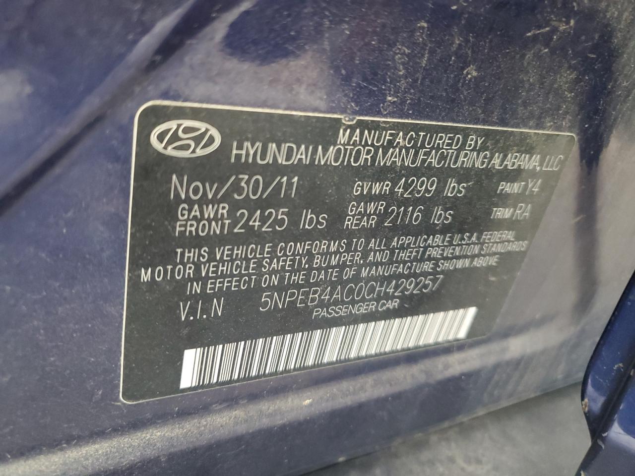 HYUNDAI SONATA 2.4 2012 р.в., (5NPEB4AC0CH429257) з США