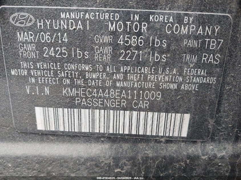 HYUNDAI SONATA 2.4 2014 р.в., Передній привід (KMHEC4A48EA111009) з США