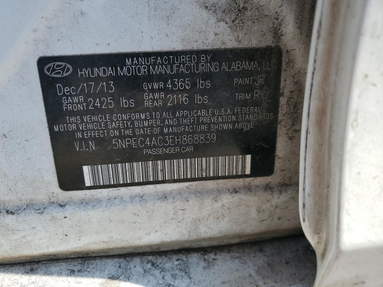 HYUNDAI SONATA 2.4 2014 р.в., (5NPEC4AC3EH868839) з США