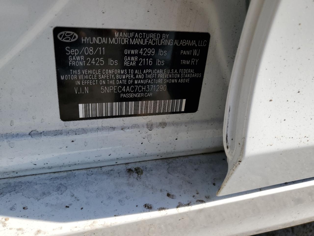 HYUNDAI SONATA 2.4 2012 р.в., (5NPEC4AC7CH371290) з США