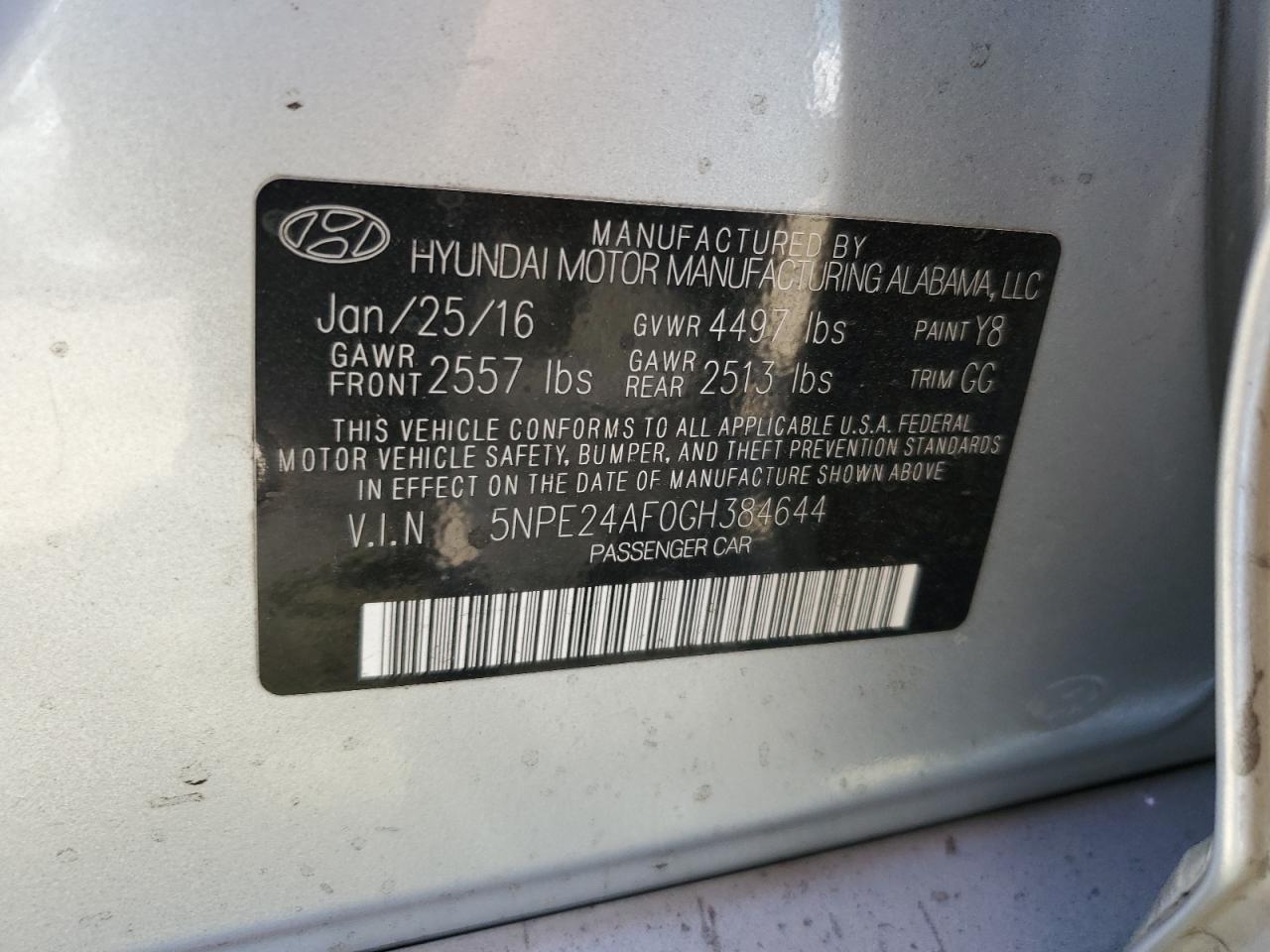 Колір СрібнийЦиліндри 4VIN 5NPE24AF0GH384644Стан НевідомоУшкодження Вандалізм