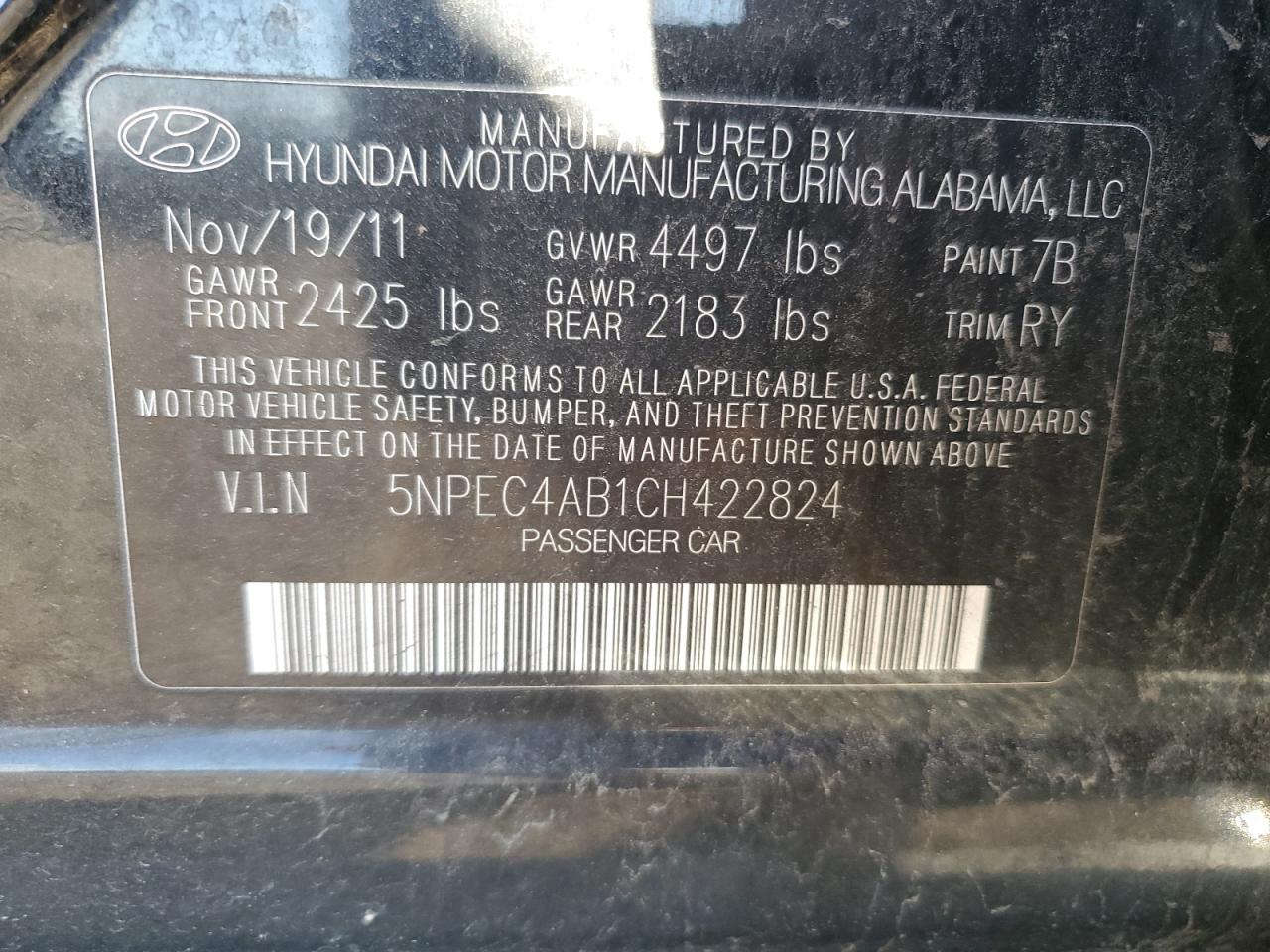 2012 HYUNDAI SONATA GLS