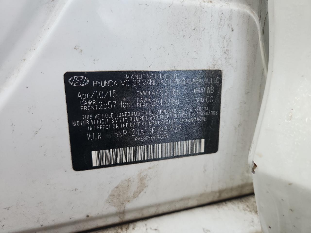 Колір БілийЦиліндри 4VIN 5NPE24AF3FH221422Стан Заводиться та їде (перевірено)Ушкодження Вандалізм