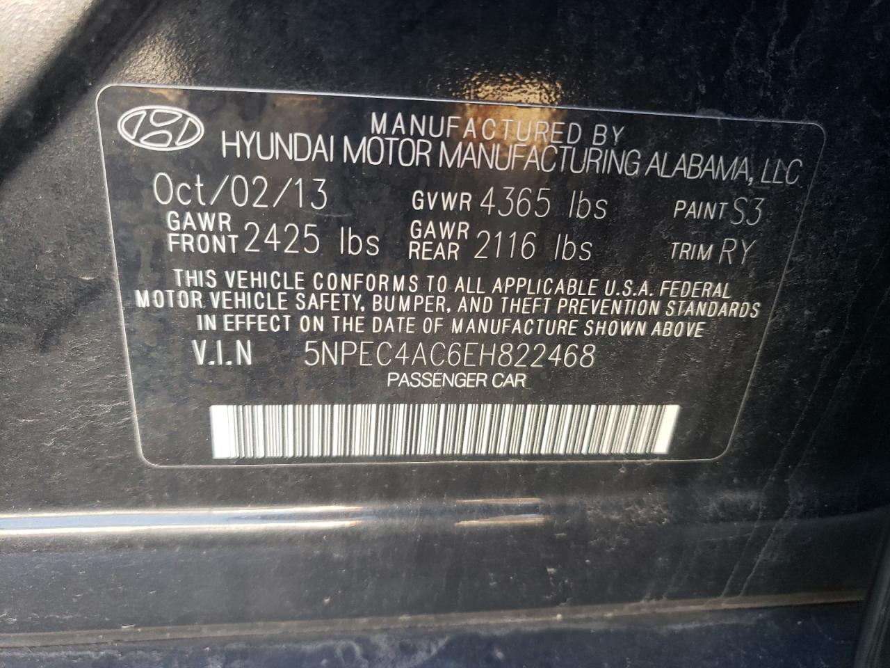 Колір ЧорнийЦиліндри 4VIN 5NPEC4AC6EH822468Стан Заводиться та їде (перевірено)Ушкодження Передня або задня