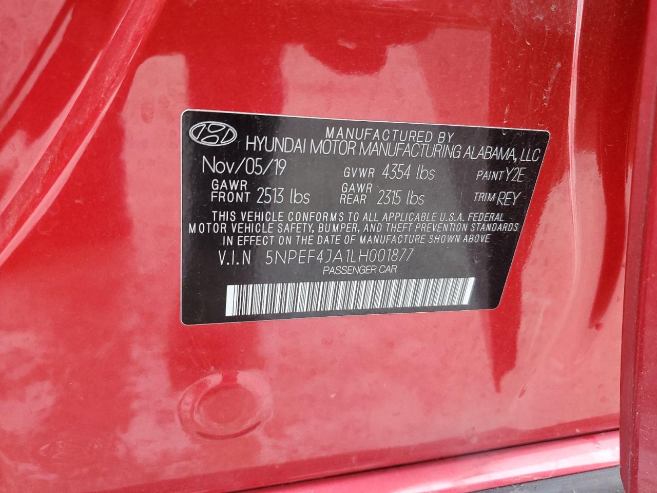 Колір ЧервонийЦиліндри 4VIN 5NPEF4JA1LH001877Стан Заводиться та їде (перевірено)Ушкодження Передня або задня