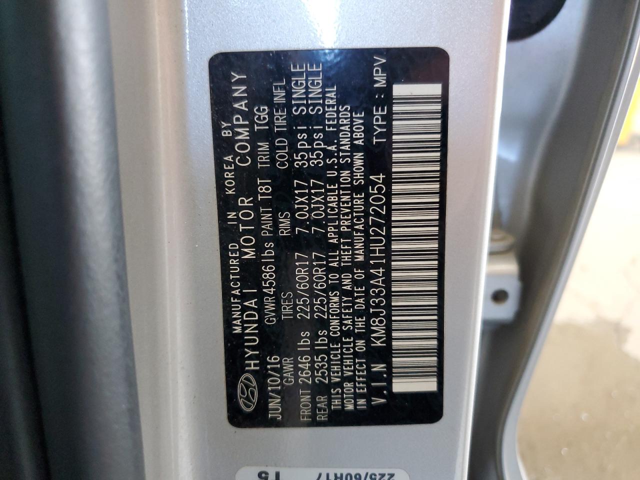 HYUNDAI TUCSON 2.0 2017 р.в., (KM8J33A41HU272054) з США