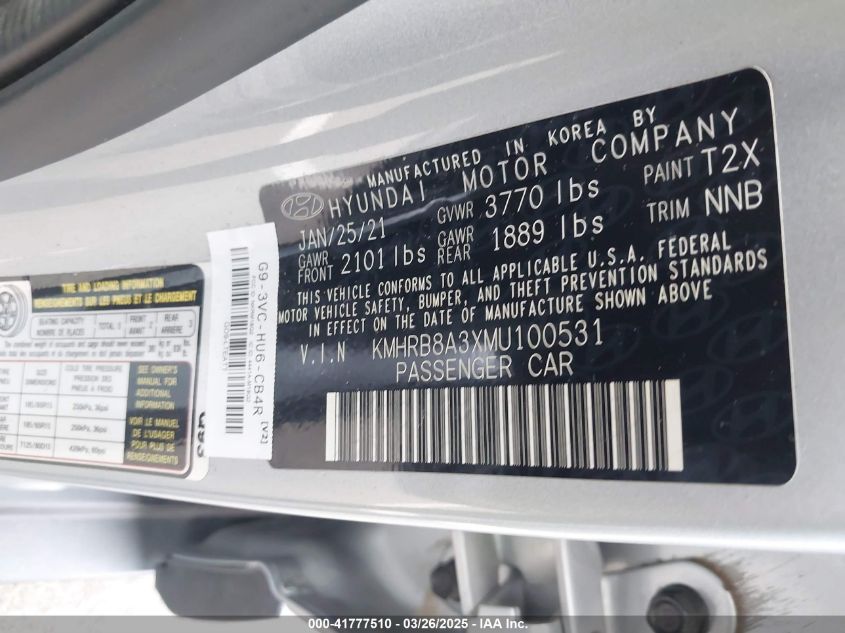 HYUNDAI VENUE 1.6 2021 р.в., Передній привід (KMHRB8A3XMU100531) з США