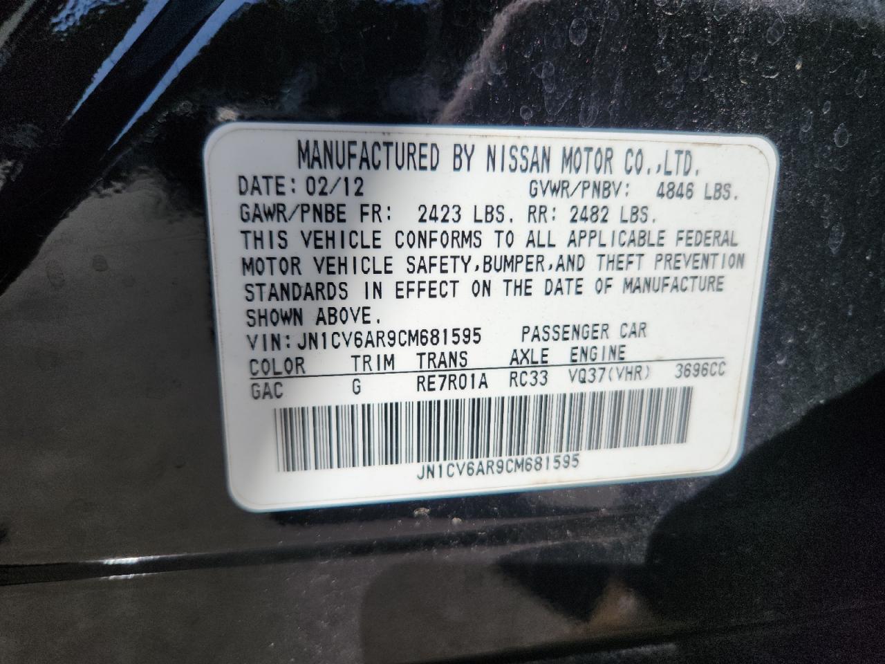 Колір ЧорнийЦиліндри 6Привід Повний привідVIN JN1CV6AR9CM681595Стан Заводиться та їде (перевірено)Ушкодження Задня
