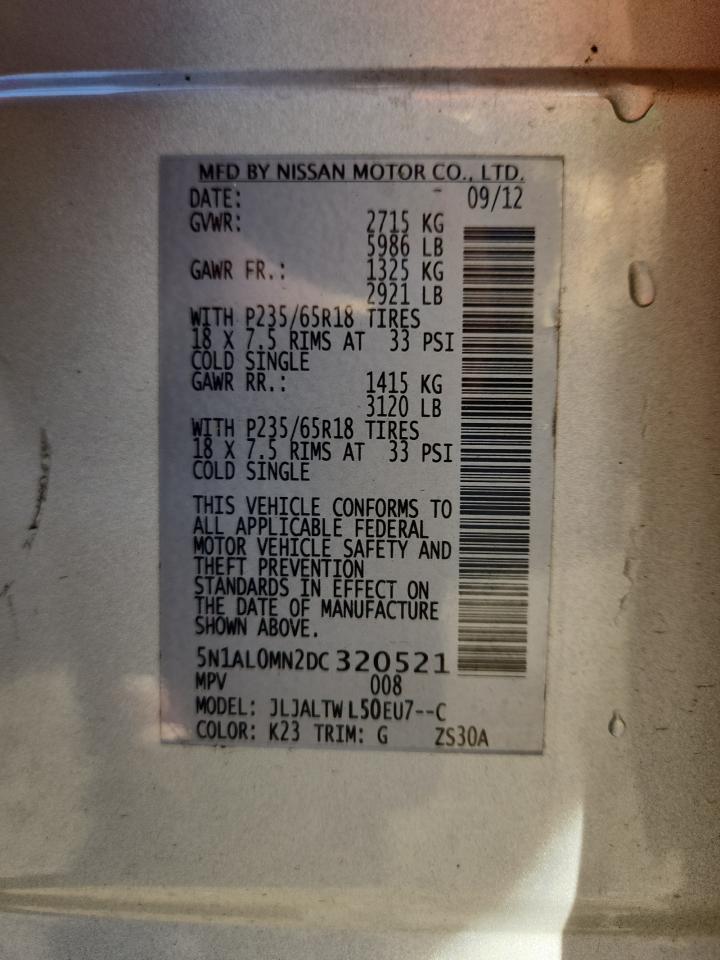 Колір СрібнийЦиліндри 6VIN 5N1AL0MN2DC320521Стан НевідомоУшкодження Передня або задня