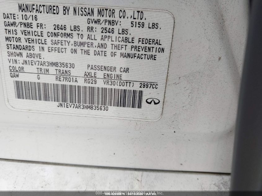 INFINITI Q50 3.0 2017 р.в., Повний привід (JN1EV7AR3HM835630) з США