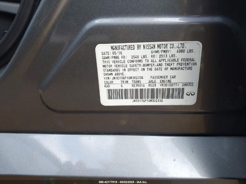 Колір СірийЦиліндри 6Привід Задній привідVIN JN1EV7AP1GM302334Стан Заводиться та їде (перевірено)Ушкодження Права сторона