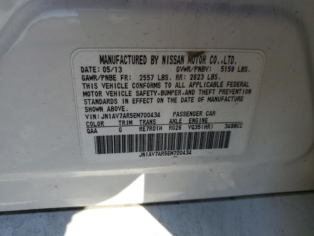 Колір БілийЦиліндри 6Привід Повний привідVIN JN1AV7AR5EM700434Стан ЗаводитьсяУшкодження Передня або задняДата аукціону 2025-11-04