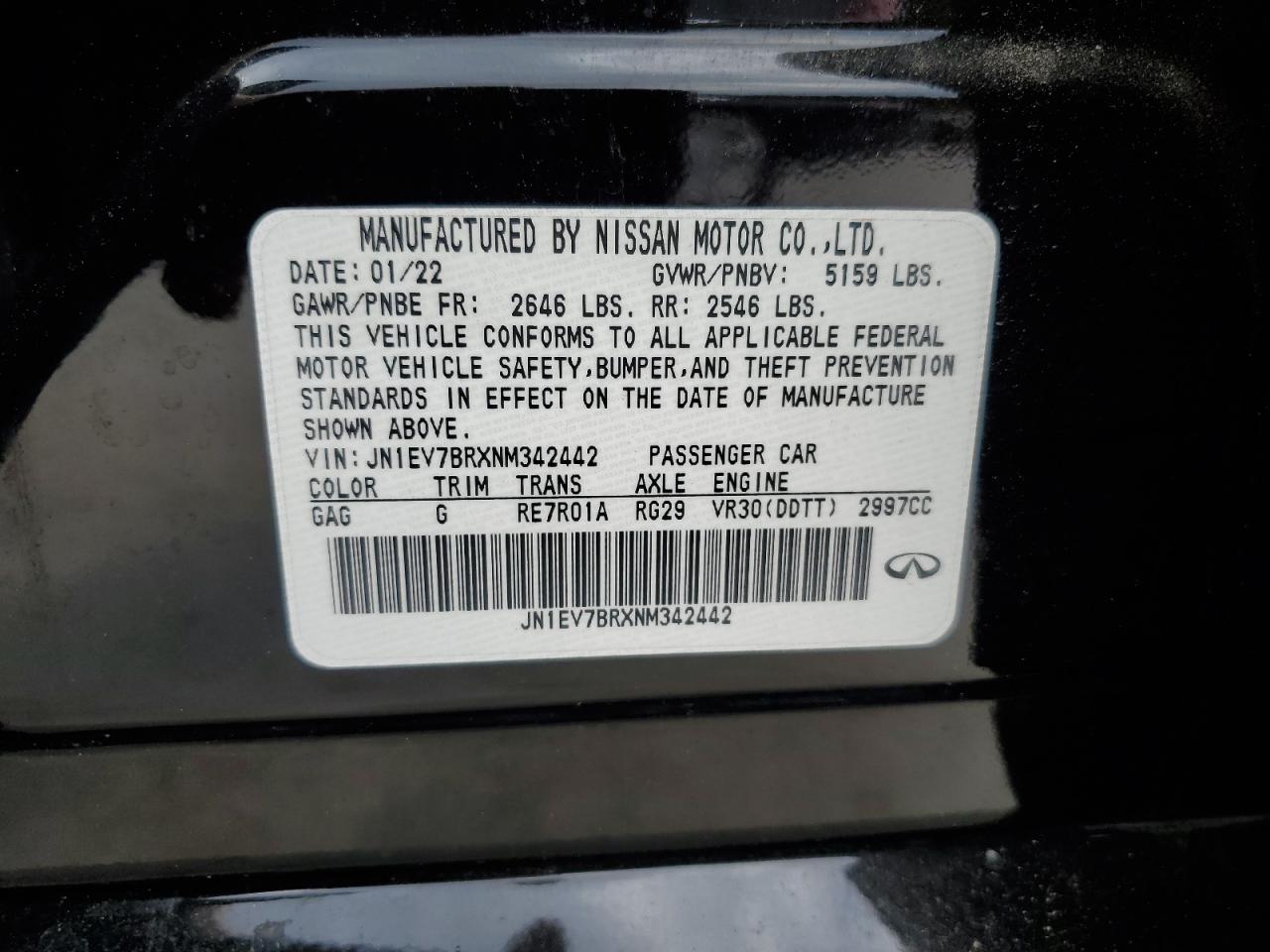 Колір ЧорнийЦиліндри 6Привід Повний привідVIN JN1EV7BRXNM342442Стан Заводиться та їде (перевірено)Ушкодження Передня або задняДата аукціону 2025-11-07