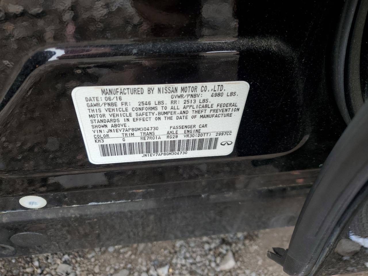 INFINITI Q50 3.0 2016 р.в., Задній привід (JN1EV7AP8GM304730) з США