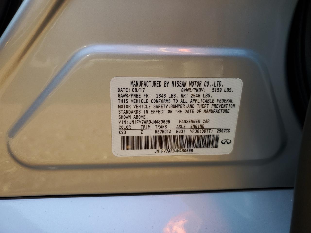 INFINITI Q50 3.0 2018 р.в., Повний привід (JN1FV7AR0JM480698) з США