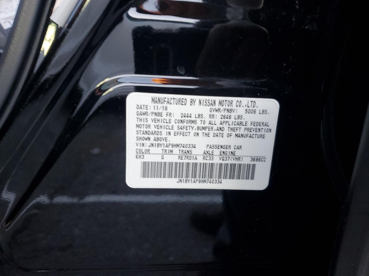 INFINITI Q70 3.7 2017 р.в., Задній привід (JN1BY1AP9HM740334) з США