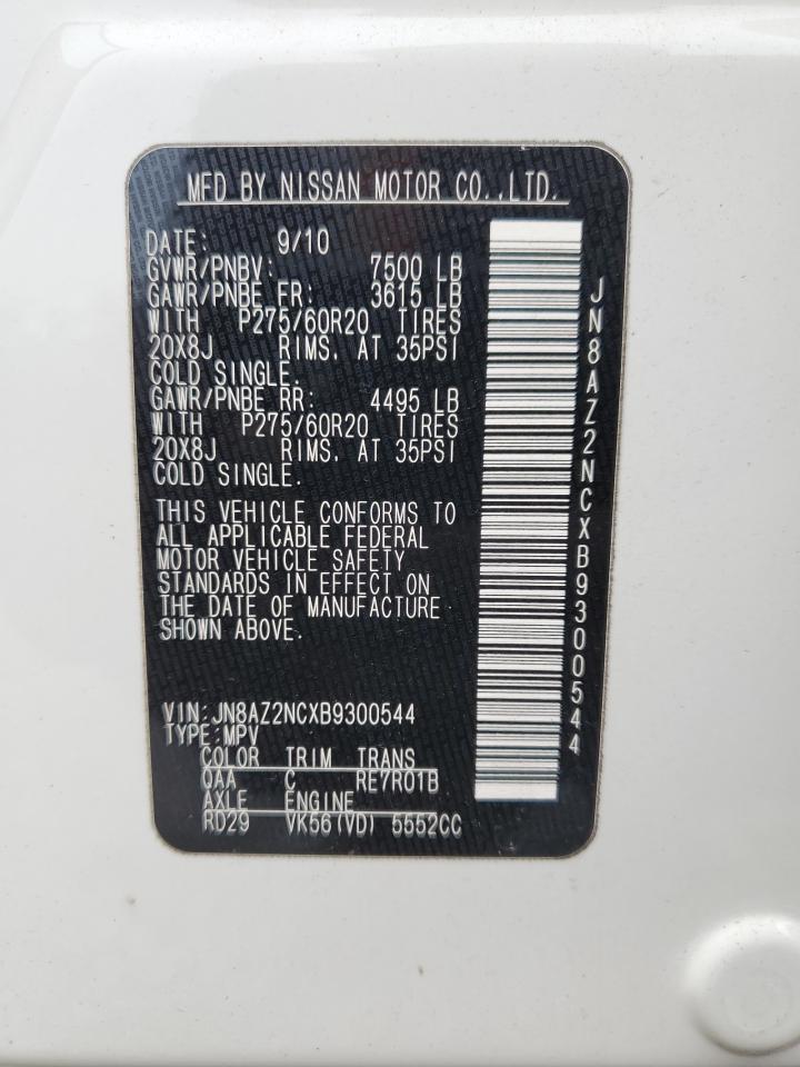 Колір БілийЦиліндри 8Привід Повний привідVIN JN8AZ2NCXB9300544Стан НевідомоУшкодження НезначніДата аукціону 2025-11-04