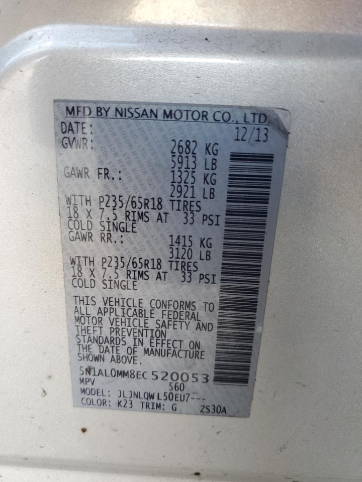 Колір СрібнийЦиліндри 6Привід Повний привідVIN 5N1AL0MM8EC520053Стан НевідомоУшкодження Передня або задня