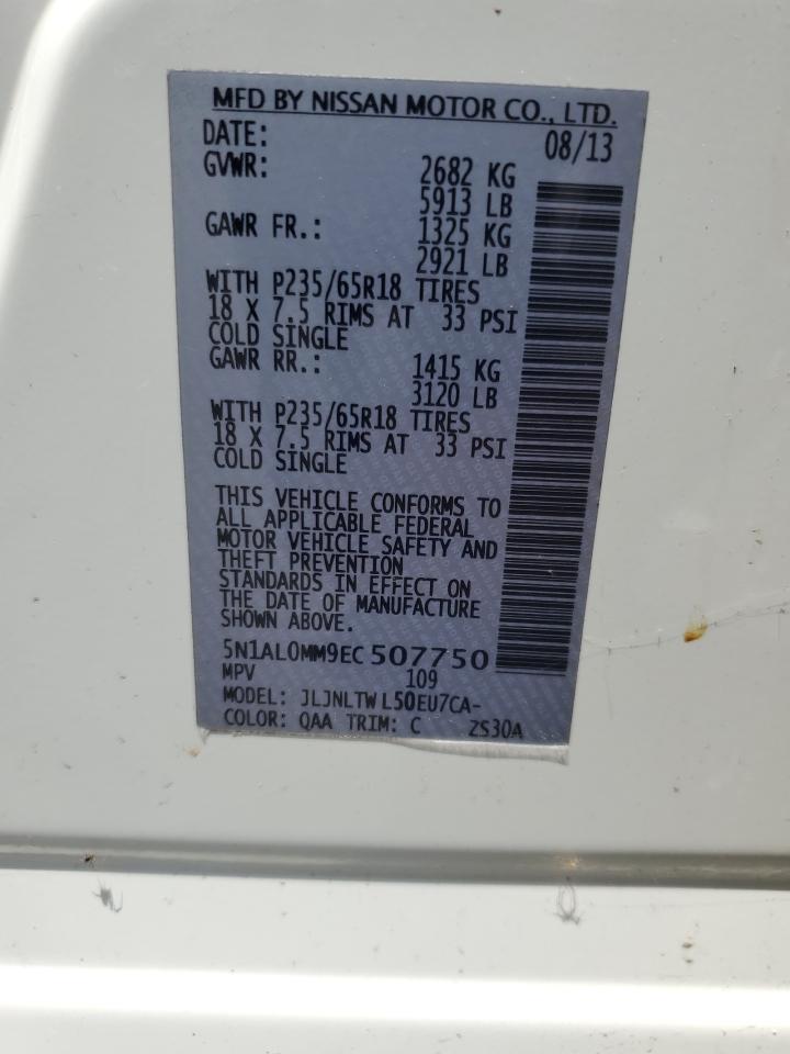 Колір БілийЦиліндри 6Привід Повний привідVIN 5N1AL0MM9EC507750Стан Заводиться та їде (перевірено)Ушкодження НезначніДата аукціону 2025-11-03
