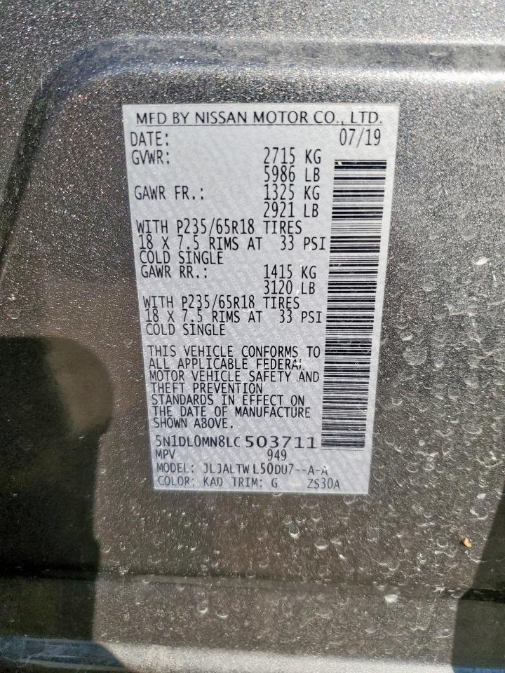 Колір СірийЦиліндри 6VIN 5N1DL0MN8LC503711Стан Заводиться та їде (перевірено)Ушкодження З боківДата аукціону 2025-11-05