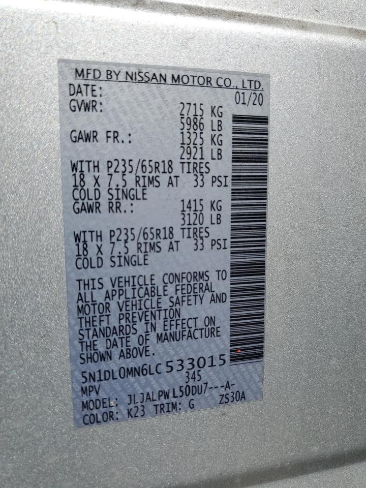 Колір СрібнийЦиліндри 6VIN 5N1DL0MN6LC533015Стан Заводиться та їде (перевірено)Ушкодження З боківДата аукціону 2025-11-05