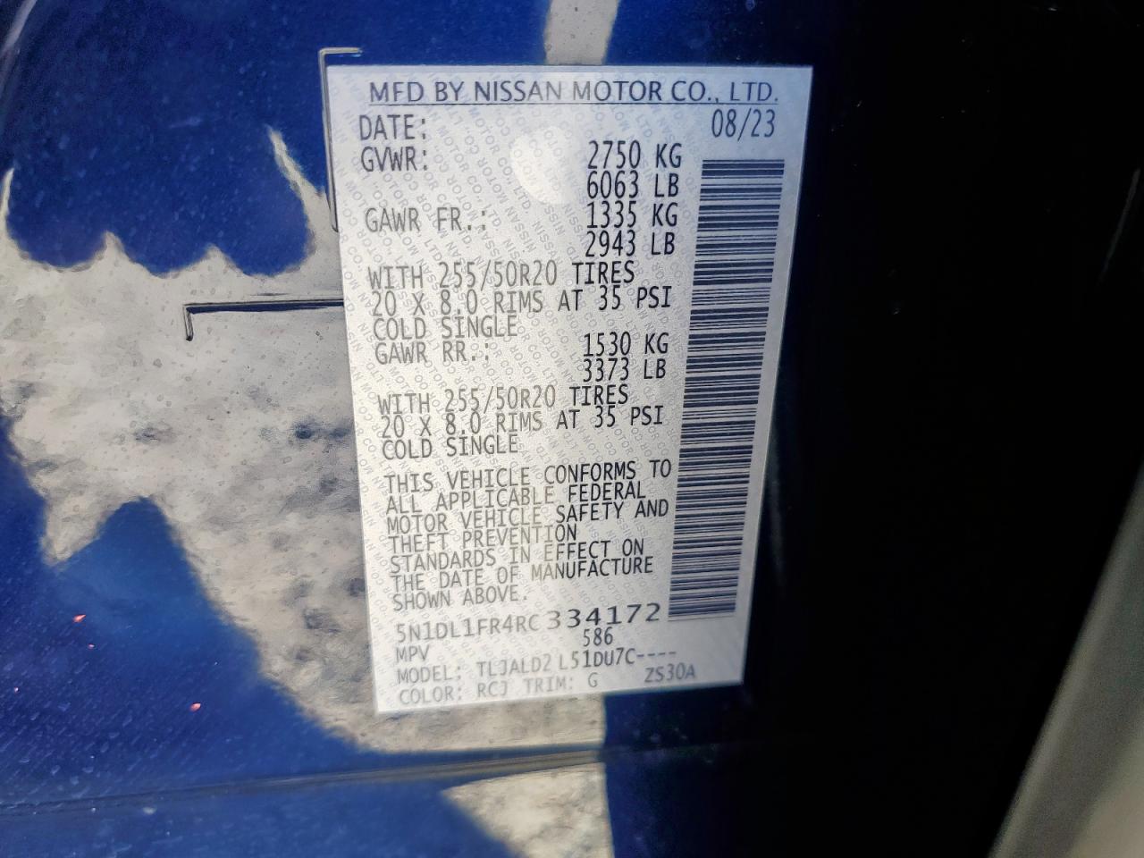 Колір СинійЦиліндри 6VIN 5N1DL1FR4RC334172Стан Заводиться та їде (перевірено)Ушкодження Передня або задняДата аукціону 2025-11-04