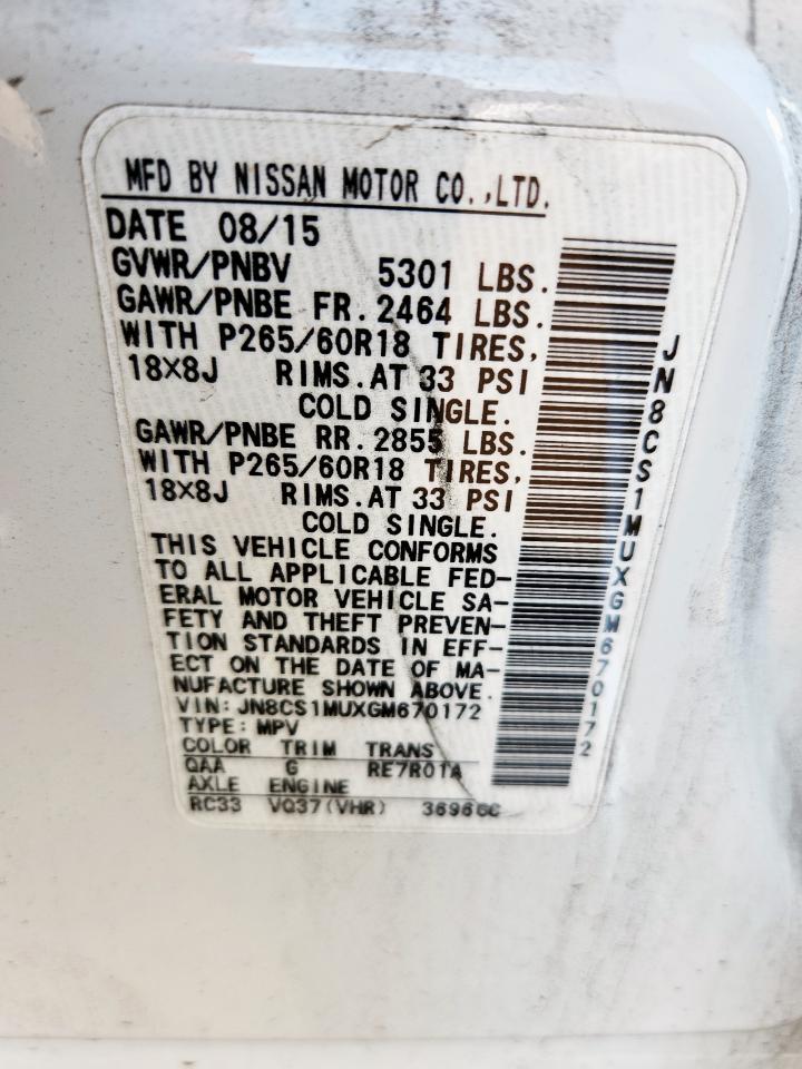 Колір БілийЦиліндри 6Привід Задній привідVIN JN8CS1MUXGM670172Стан Заводиться та їде (перевірено)Ушкодження Передня або задня