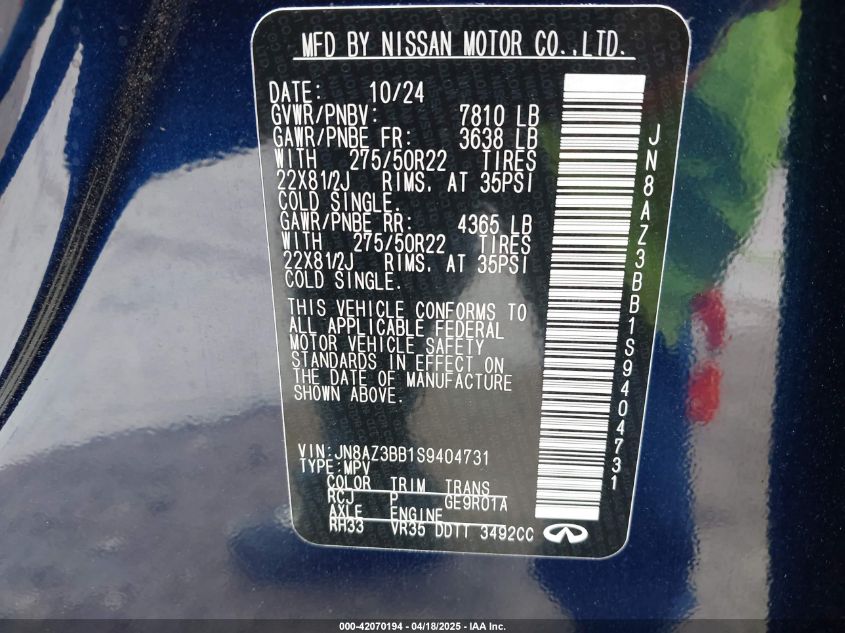 INFINITI QX80 3.5 2025 р.в., Повний привід (JN8AZ3BB1S9404731) з США
