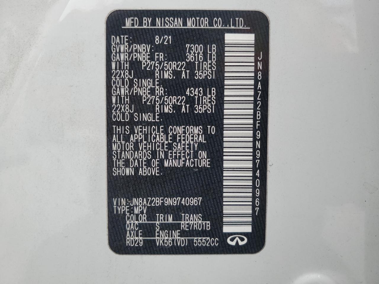 INFINITI QX80 5.6 2022 р.в., Задній привід (JN8AZ2BF9N9740967) з США