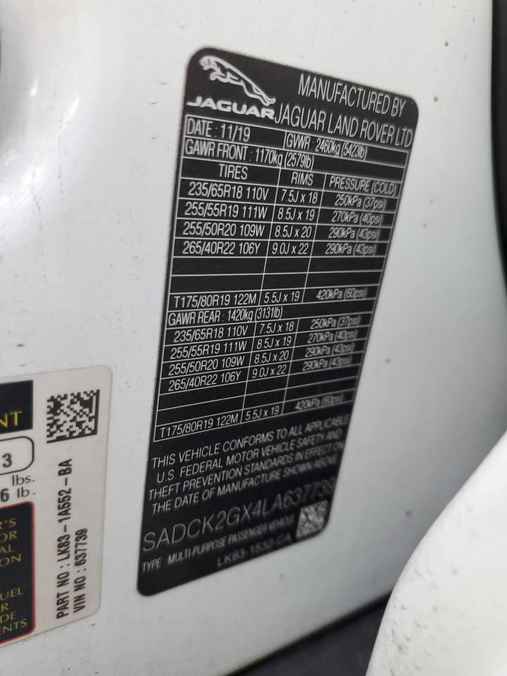 JAGUAR F-PACE 2.0 2020 р.в., Повний привід (SADCK2GX4LA637739) з США
