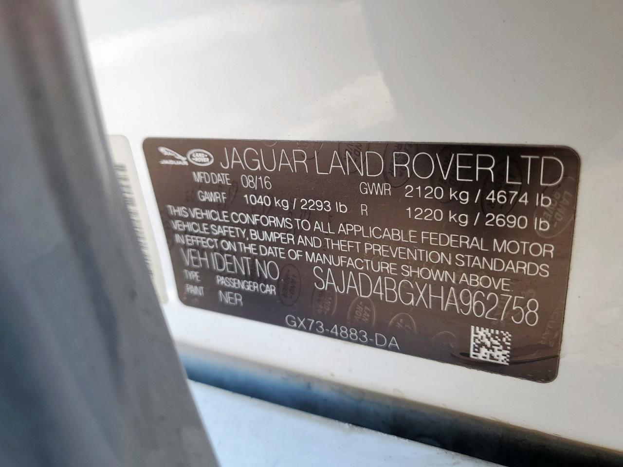 JAGUAR XE 2.0 2017 р.в., Задній привід (SAJAD4BGXHA962758) з США