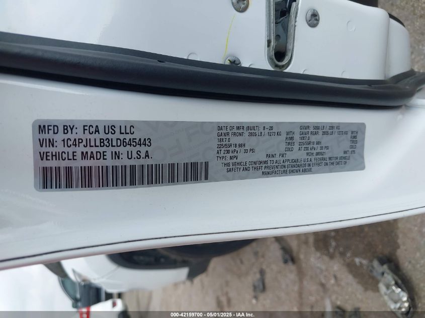 JEEP CHEROKEE 2.4 2020 р.в., Передній привід (1C4PJLLB3LD645443) з США