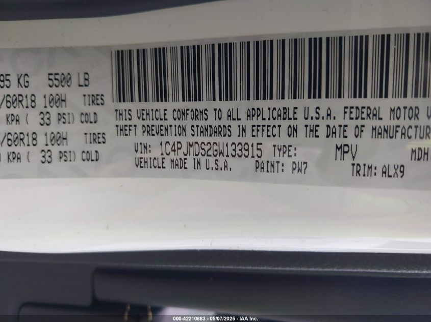 JEEP CHEROKEE 3.2 2016 р.в., Повний привід (1C4PJMDS2GW133915) з США