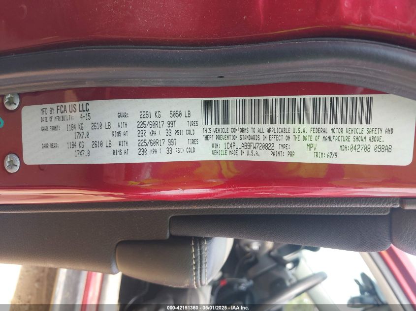 JEEP CHEROKEE 2.4 2015 р.в., Передній привід (1C4PJLAB9FW720822) з США