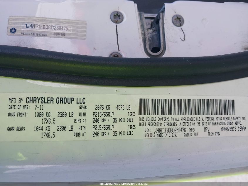 JEEP COMPASS 2.4 2011 р.в., Повний привід (1J4NF1FB3BD259476) з США