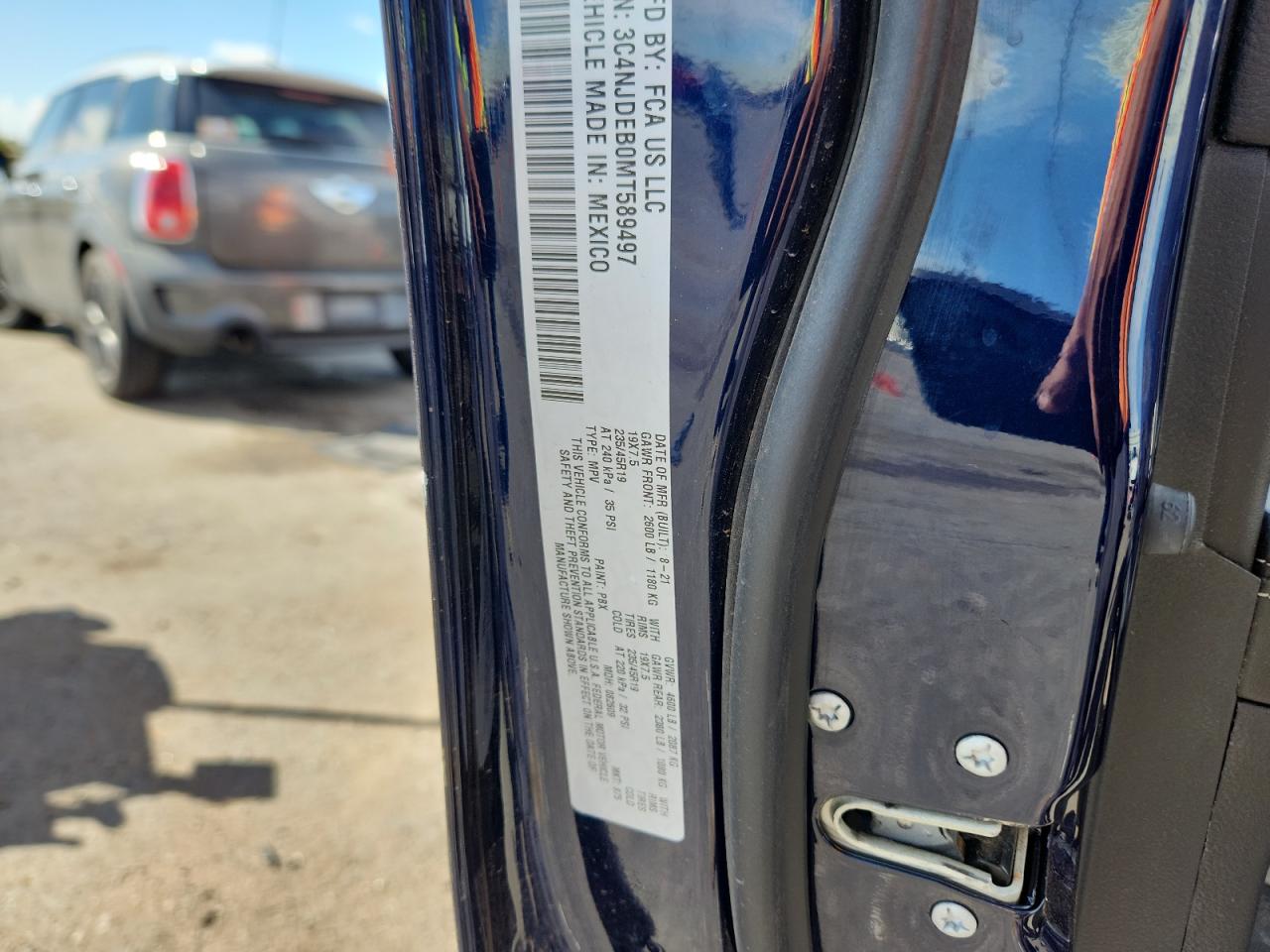 Колір СинійЦиліндри 4Привід 4x4 з переднім приводомVIN 3C4NJDEB0MT589497Стан Заводиться та їде (перевірено)Ушкодження ЗадняДата аукціону 2025-11-06