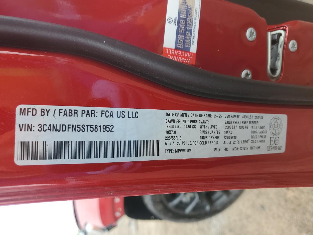 Колір ЧервонийЦиліндри 4Привід 4x4 з переднім приводомVIN 3C4NJDFN5ST581952Стан НевідомоУшкодження НизДата аукціону 2025-11-04