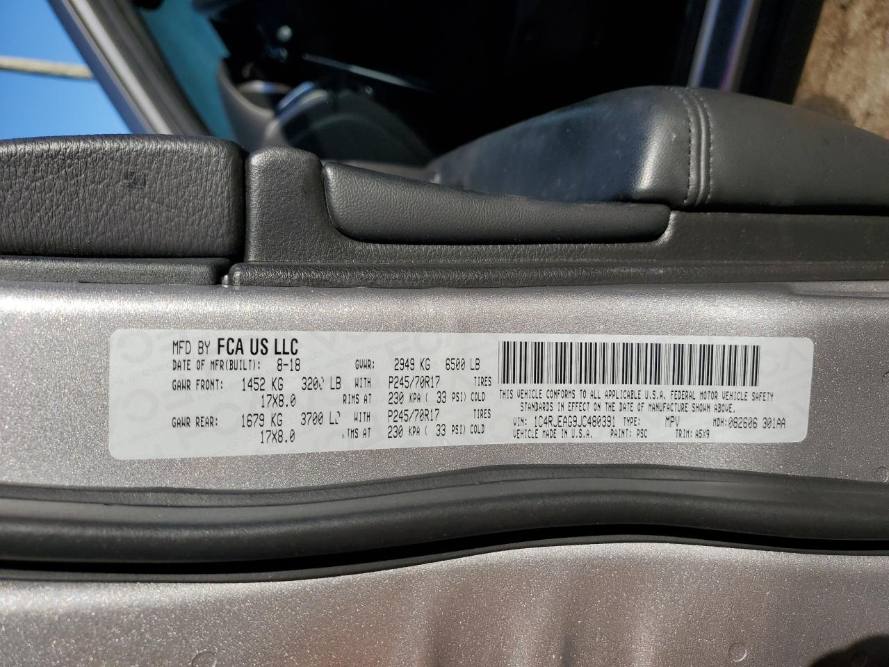 JEEP GRAND CHEROKEE 3.6 2018 р.в., Задній привід (1C4RJEAG9JC480391) з США