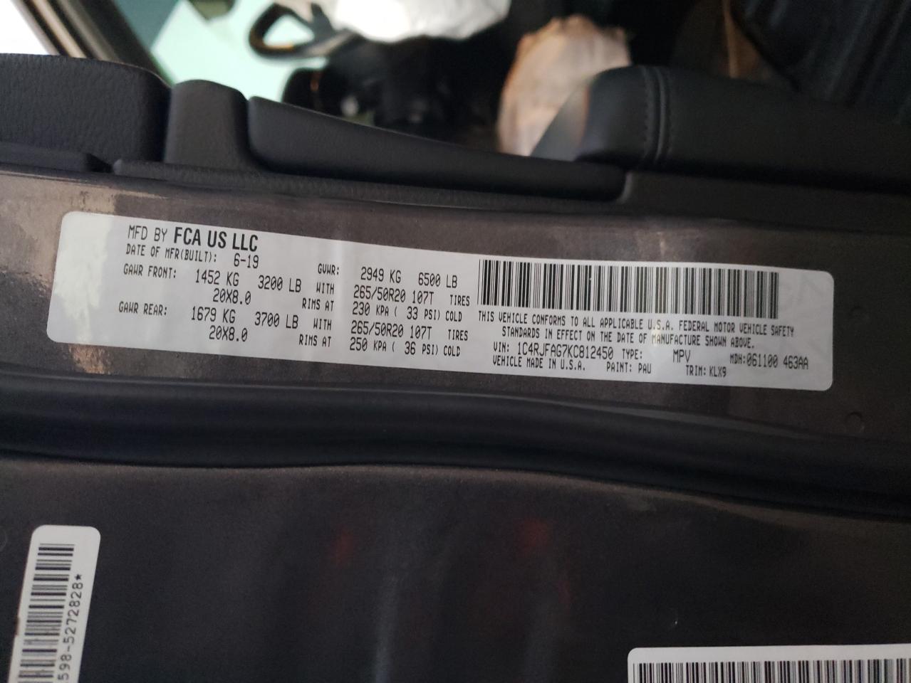 Колір СірийЦиліндри 6Привід 4x4 з заднім приводомVIN 1C4RJFAG7KC812450Стан Заводиться та їде (перевірено)Ушкодження Передня або задня