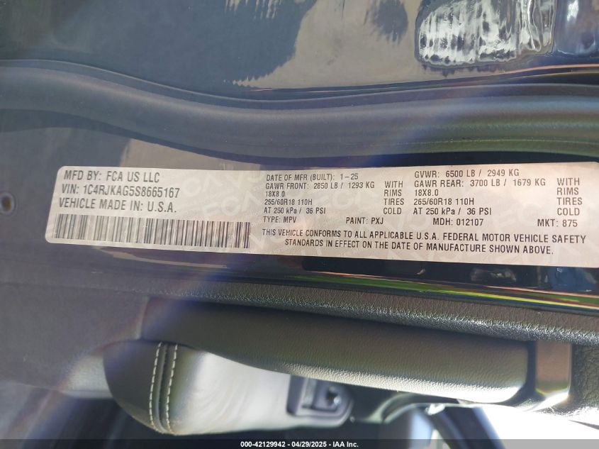 JEEP GRAND CHEROKEE 3.6 2025 р.в., Повний привід (1C4RJKAG5S8665167) з США