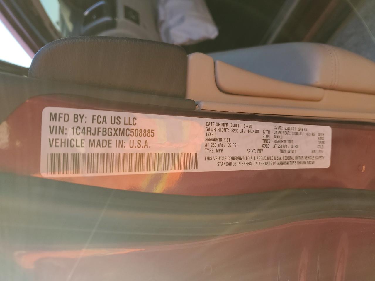 JEEP GRAND CHEROKEE 3.6 2021 р.в., 4x4 з заднім приводом (1C4RJFBGXMC508885) з США